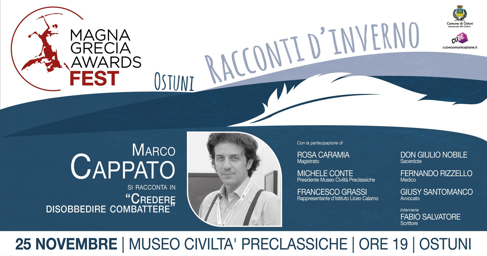 Un nuovo cammino di racconti di vita è partito il 10 novembre 2017 con il Magna Grecia Awards Fest – Racconti d’Inverno, che per questa sua edizione ha scelto le località di Castellaneta ed Ostuni.