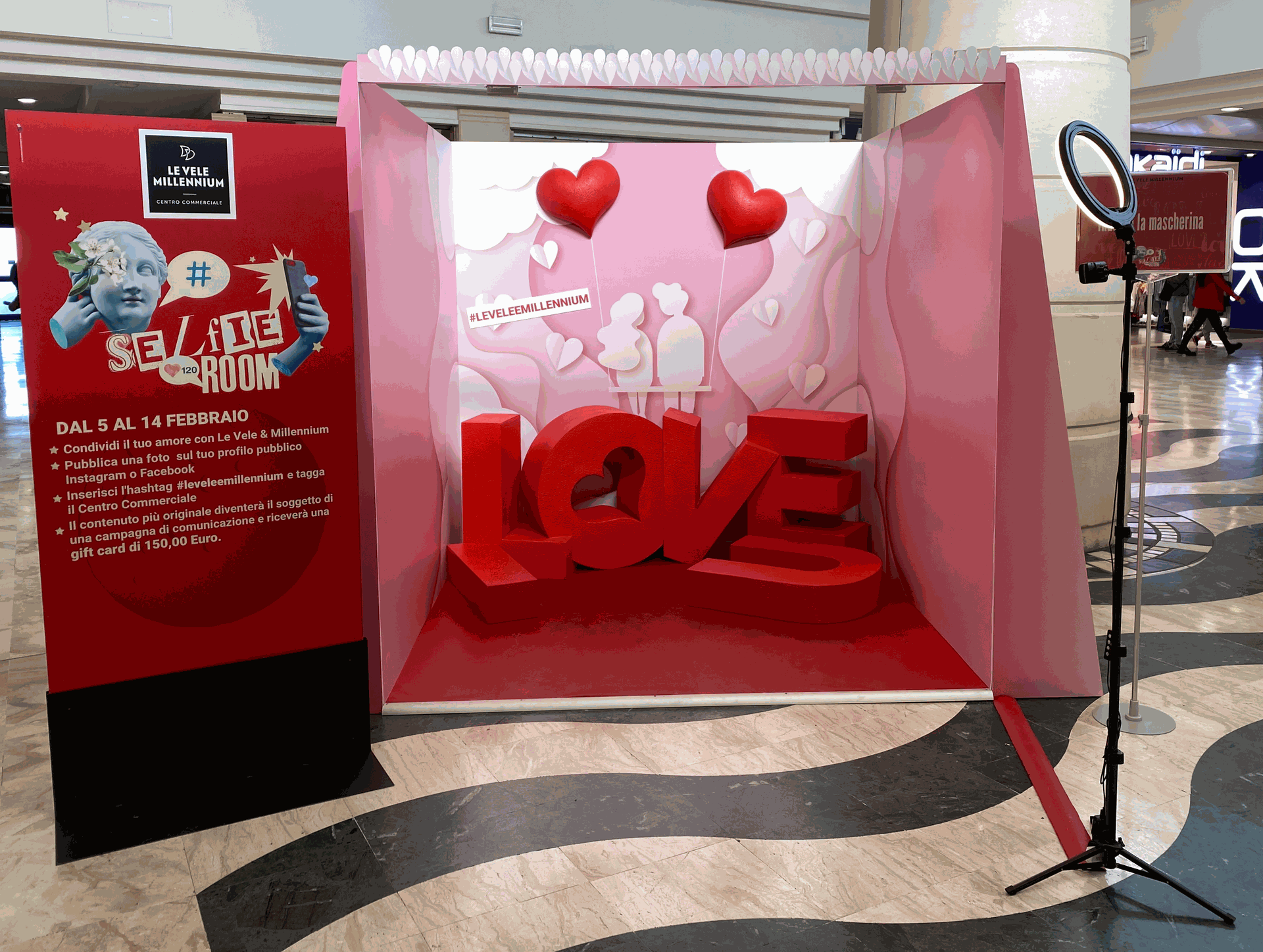 Fino al 14 febbraio, presso il Centro Commerciale Le Vele & Millennium di Cagliari, è in corso l’attività che immortala l’amore vero. A fare da cornice, una Selfie Room a tema San Valentino e un contest fotografico “Uno scatto d’amore”, iniziativa finalizzata alla diffusione di messaggi positivi attraverso i selfie degli utenti Instagram e Facebook.